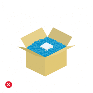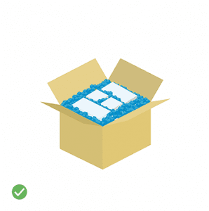 Articolele ar trebui împachetate în mod individual pentru a preveni deteriorarea altor articole în interiorul pachetului. Recomandăm cel puțin 5 cm de căptușeală în interiorul cutiei.